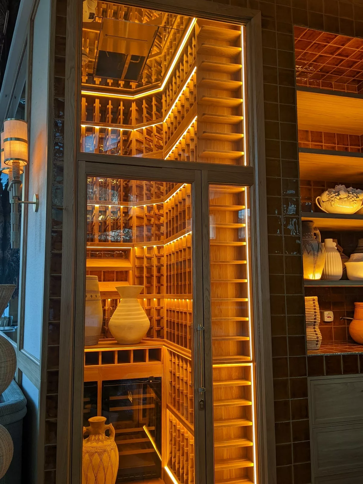 Beautiful Wine Cellar set in Stone Walls with Silver Oak Lacquer