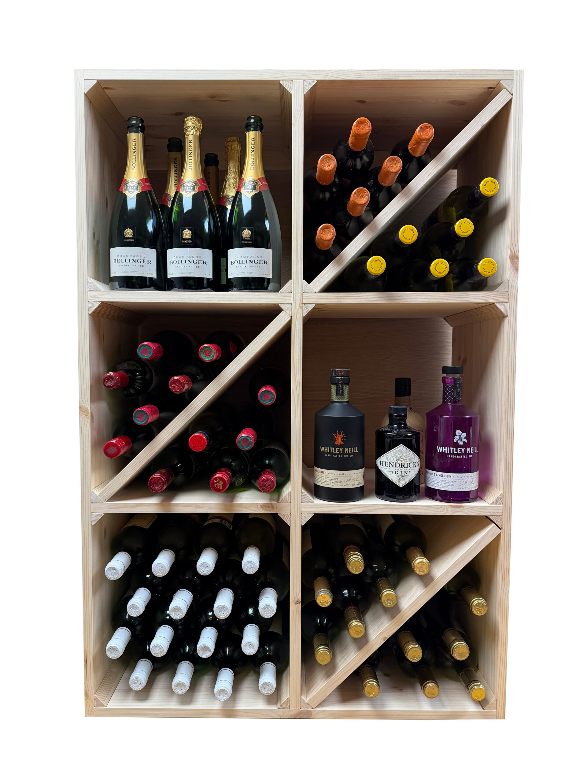 Solid Pine Smart Wine Bins are manufactured with 6 Wine storage compartments, each can hold up to 16 bottles giving a total capacity of 96 bottles.